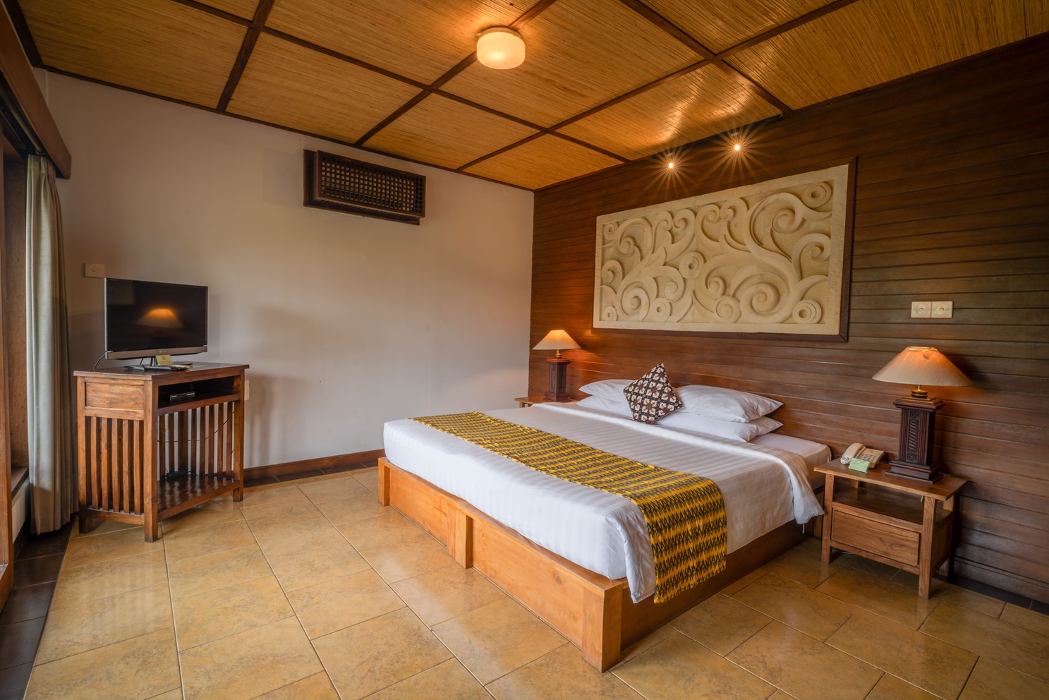 Bright rooms with a view of nature. Superior Lower Level Rooms are equipped with a comfortable private terrace and a semi-outdoor bathroom with a garden. Superior Upper Level Rooms feature a cozy open balcony with nature views from every window. Each Superior Room blends traditional Balinese and modern styles in both architecture and furnishings. The room can accommodate one extra bed and one baby cot, making it suitable for couples, friends, or small families.